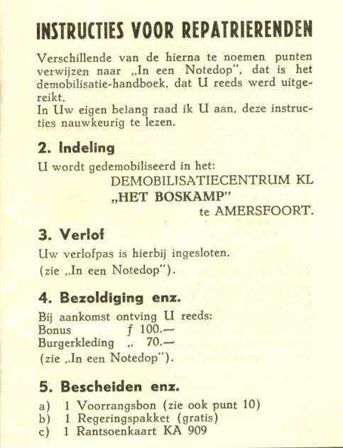 Om ongeveer zes uur *s morgens varen we de haven binnen en er staat een ontvangstcomité o.l.v. gouverneur-generaal van Mook en we moeten ons melden. Omdat ik wist dat mijn broer Piet ook met de boot was gearriveerd had ik toestemming gekregen van de compagniescommandant , die uit Velp kwam en dus dicht bij Huissen woonde, om naar hem toe te gaan de volgende dag. Wel hebben we ons afgemeld met: terug van weggeweest ! Wat ik later hoorde heeft Gouverneur-generaal van Mook een donderspeech gehouden en in krachtermen die niet voor herhaling vatbaar zijn.