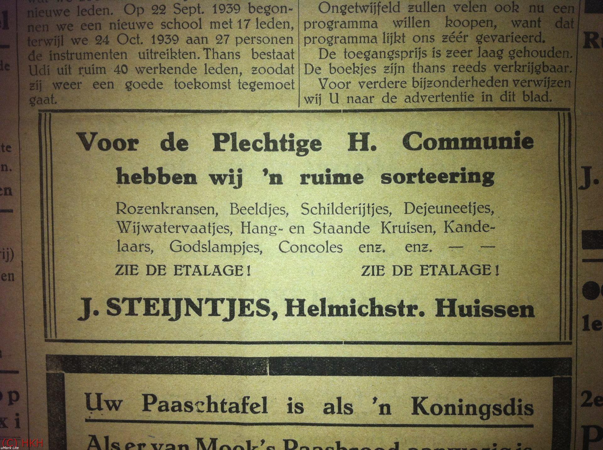 Tijdens deze avond zijn beelden vertoond die een overzicht geven van de beroepen die in de 30'er- en begin 40'er jaren in Huissen werden uitgeoefend.Hieronder vindt u hier een selectie van negen foto's over dit onderwerp.